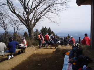 | 見晴台がありました。春霞で遠望はききませんが、眼下にあきる野市、その先には高尾や陣馬の山並み、丹沢方面も見えるのでしょうか? | |