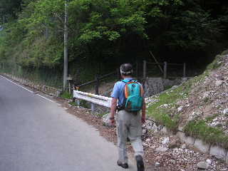 支度を整え、林道を歩き出す。のんびり花見を楽しもうと、今回は珍しく荷物を極力軽くした。あえてナップザックにしたのだが、これは失敗だった。私の場合、無理やり荷物を詰め込んだものだから背中に当たって痛い。やはりいつもの山用ザックにすればよかったと後悔。慣れの手抜きはやっぱりイカン!あろうことか、地図まで忘れてきた!そこまで軽くすることもなかろうに・・・ 登りはツツジ新道から登っていく。5時を過ぎれば辺りはもう明るい。早朝にも関わらず単独の登山者がひとり、ふたりと私達を追い抜いていった。よけて先を譲り、相変わらずのんびりと登っていくが、荷物が軽いせいか、夫のペースがいつもより幾分早い。あとからまたバテないでよぉ〜! |