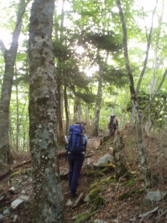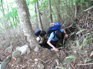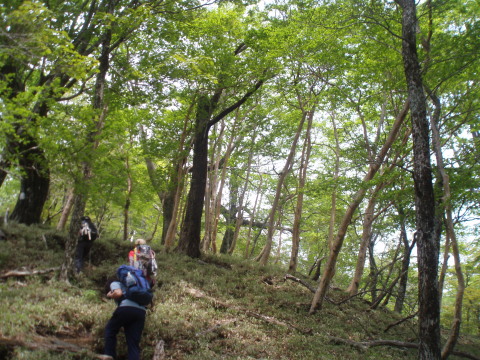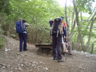 | ゴーラ沢で一休みした後いよいよ登りです。ゆっくり、ゆっくり。 | ![]() |