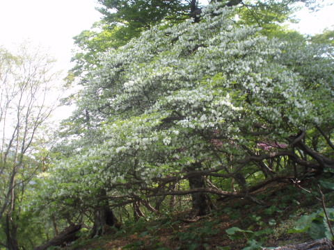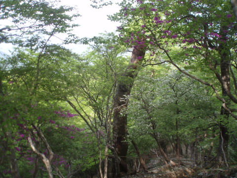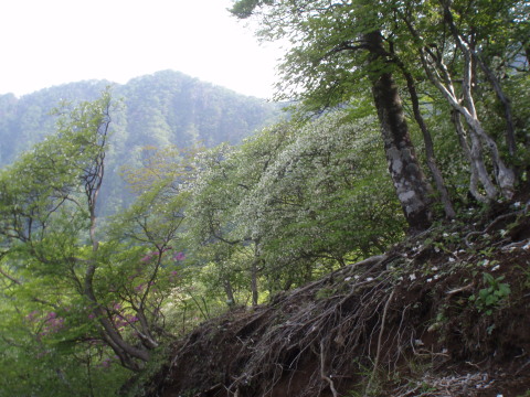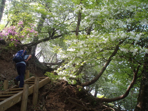 1300m辺りでは散り始めていたシロヤシオ 1350m辺りからいよいよ開演です。 先ずはトウゴクミツバツツジとの競演。 ![]() |