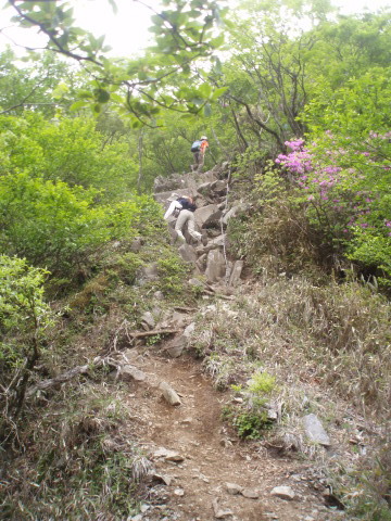 | お友達のミドリさん、約半年ぶりの山だそうでした。ゆっくりでいいからねなんて声をかけながら行きますが、私達も今回は久々のがっつりコース。息があがります^_^; | ![]() |