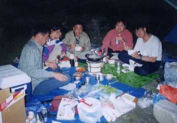 夜はここで泊まることにした。値段をSLが交渉して一人500円にしてもらいテント泊。先に簡単に準備してから中川温泉、ぶなの湯へ。一人700円。露天風呂あり。シャンプー、ボディシャンプー、ドライヤー等あり。再び戻り、宴会?準備。この日に帰る人、加わる人がいて、再び6人。ビールを飲みながらすき焼き。かんぱ〜い、お疲れさま。食べきれないほどの量だったが、山から下りてきて、こうしてみんなで食べるのはやっぱり美味しい。 翌日は丹沢クリーンハイクへ。 |