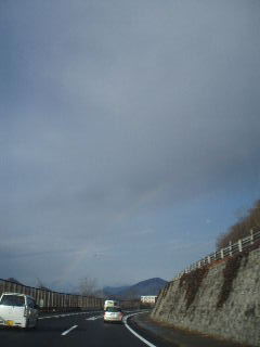中央道にのると、8時ごろ前方に虹。