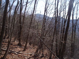 | 途中山頂が見えます。落葉している時期なればこそ、このように見えるのでしょう。 |