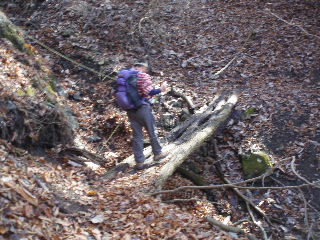 | 落葉した木々の間を行く陽だまりハイクですが、この日は手持ちの温度計で最高21度になり、とても暑い一日でした。 |
