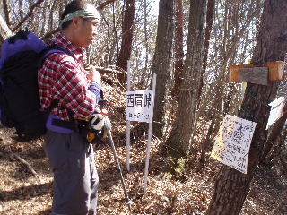 | 西肩峠。山頂へのタイムが20〜15分と書いてあって、ホッ! |