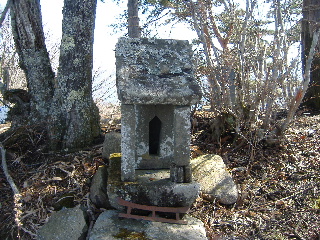石碑の裏側には小さな古めかしい石の祠。古くから親しまれている道なのでしょう。 |