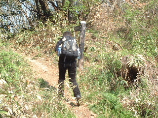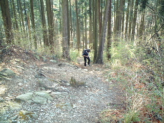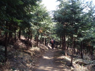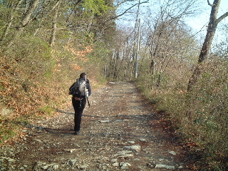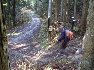 | 時々林道を横切って行きます。一般車両は通行止めなので、たまに関係車両が通るだけです。前回、家族連れはこの林道を歩く人が多く見られました。 この後下山してくる地元の方に会いました。今回のコース長瀞アルプスは所属している会の人が名づけたそうです。最近のことなのでしょうか? 行き先を聞かれコースを話すと「波久礼駅まで?分かり易いから大丈夫ですよ」とこの人は確かに仰っていた・・・^_^; |