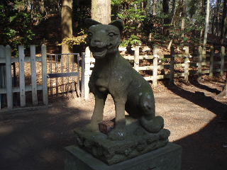 | お参りしていきます。 ん?両側を良く見ると、狛犬さんです。やせ細った印象でしたがトロンとした愛嬌のある目をしています。 |