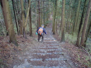 | 山頂直下の林道です。ここから右へ階段を上ります。 | |