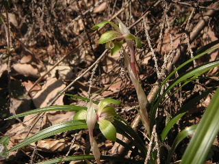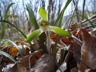 | 途中、左側に行く道があったのでピークを踏んでいくことにします。 すると、またまた発見!シュンランです。 |