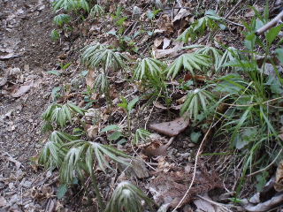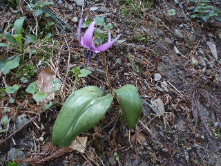 なんと!ここにもカタクリが一輪咲いてました。 見上げると上にもいくつか見えましたが、写真は撮れませんでした。 |