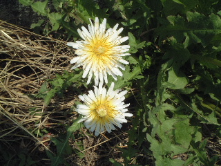 ↑ 珍しい白タンポポ |