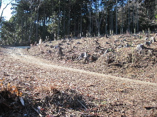 | 伐採跡には植林。どんな林になるのでしょう。 | |