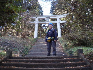 | 宝登山奥宮の階段。なんとまだ寒桜が咲いていると書かれています♪ | |