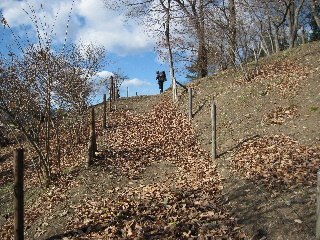 | 急な登りでもうヨレヨレ・・・^_^; 車も通れる道が遊歩道として使われることが多いらしく、登山道は荒れている所もありました。 |