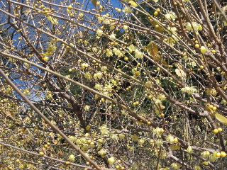 | この辺りの樹も全部蝋梅ですが、まだご覧の通り。 | |
