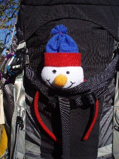 | 昨日のマスコットもお供に。可愛い孫が背中にいるみたいです(笑) | |