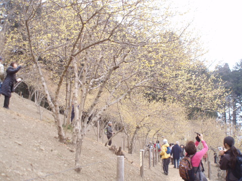あっという間に蝋梅園。まだ静かだと思っていたらそこそこの人が既に散策中でした。 |