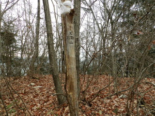 天狗山山頂といってもそのまま通過してしまいそうですが、冬なればこそ、木々の間からは宝登山が! | |||