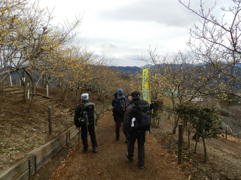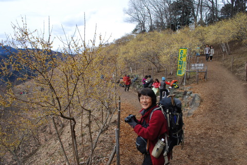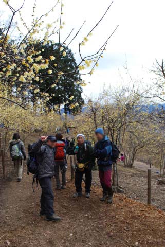 | 長瀞アルプスから宝登山へ。西蝋梅園の蝋梅は満開。東蝋梅園は少し。梅百花園の梅もまだ殆ど蕾。今年は例年より寒いようで蝋梅、梅の開花が一ヶ月ほど遅れているようです。福寿草は咲き始めていました。少し前まで雪があったようなので軽アイゼンも持参しましたが積雪はなく未使用。 |