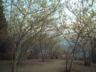 山頂までは約45分。その間梅はどこ?お花もなく、杉や檜の樹林帯に花粉症の私は恐怖の面もち。階段を上り売店の前を通って先に進むと広い山頂だった。時間は既に4時近かったため人は少なかった。話に聞いていたロウバイがまだ咲いていた。ロウバイはもう終わってしまっただろうと思っていただけにびっくり、得した気分。終わりかかっていたものだけでなく、今を盛りに咲いているものも数多くあって感激。とてもいい香りが漂ってきた。