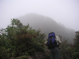 天気が良くても稜線からの展望は限られていたように見えた。仙谷との分岐までくると前を歩く人影が見えた。こしき岩を巻いて山頂へ向かう。