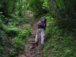 | 先にゆっくり歩き出す。テント2泊の予定だが、予備日を含め3泊4日+αの装備。久々に重い。互いに20キロくらいのザックだ。 | |||||||||||||