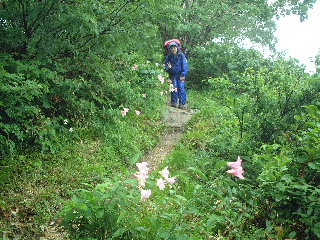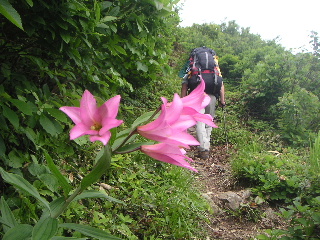 後から登っていくときれいなヒメサユリが咲いている所だった。他にもいろいろな花がたくさん・・・ | ||||||||||||