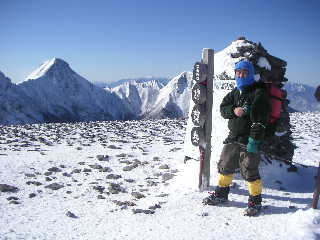 【快晴だが強風で寒かった硫黄岳山頂】 |