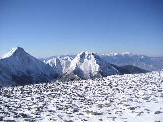 | 【東天狗より南アルプス(右後方)、八ヶ岳主峰を望む】 |