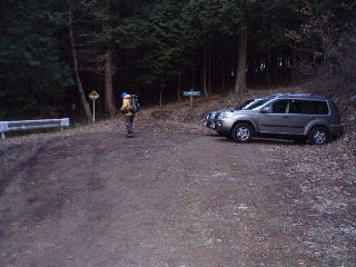 | 上の駐車場までは約1キロほど。車でよかった・・・^_^; 5,6台は置けそうです。すでに1台停まっていました。 |