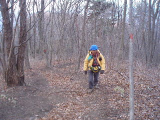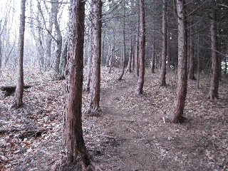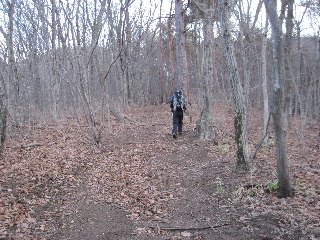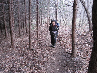 | 杉林を進みますが左手は落葉樹。 | |