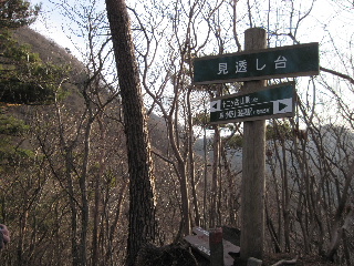 | どこからあの山頂に向かうのだろうと思っていたら、前方に見透し台の標示が見え、ちょうどお一人下山してくるところでした。夜明け前に登られたということです。駐車場のもう一台の車の方なのでしょう。 | |