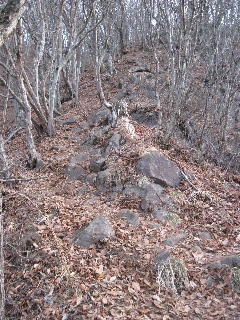 | 斜面が少し緩やかになると尾根に出ました。 | |