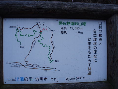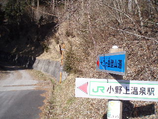 | 駐車場の側に登山道の案内。この先は行きませんでしたがmikkoさんの情報ではこの先にも5〜6台駐車可能だそうです。 このあと、標識に従って小野上温泉駅方面に車で向かいましたが・・・ |