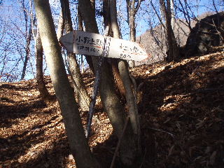 | 二またに分かれた所ではここも小野上駅からのコースと合流。この先もいくつかこういう標識がありました。ガイドブックには細かに出ていませんでしたが、いろいろコースがあるようです。 | ||||