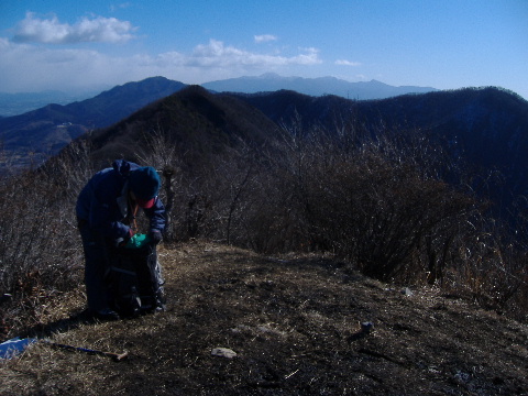 | 次に単独の男性。小野子山手前の鞍部に出てそのままこちらへ登ってこられたそうですが、やはりとても寒かったそうです。ここまで登り20分か25分かかったそうで、そんなものかとびっくり。でもこの日は行く気になりませんでした(^^ゞ sanaeとしては珍しいことです、トシちゃんならわかりますが(笑) この方とは十二ヶ岳から戻られるときにもう一度すれ違いました。 そしてもう一組は雨乞山の方から縦走の若い男性お二人。汗びっしょりかいていましたが小野子山ではやはり凍りそうに寒かったそうです。ここは暖かくて別天地だったようです(^^ゞ |