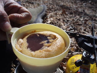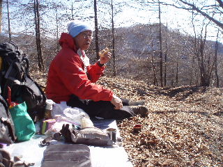 | そうとなれば小野子山を眺めながら陽だまりでお昼にします。 | ||||