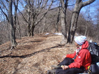| いけましたよ〜♪ 美味しかったです〜♪ 一時間くらいのんびりしてしまいましたが、この間に小野子山方面から3組が通り、束の間の時間ではありましたけどそれぞれ一期一会の楽しいひとときでした。けっして関所ではありません(笑) 最初は男坂女坂の分岐で出会った4人の方々(男性1、女性3)。小野子山まで行って戻ってきました。風が強くて冷たく、とっても寒かったそうです。栃木の方々でしばらく四方山話♪ |