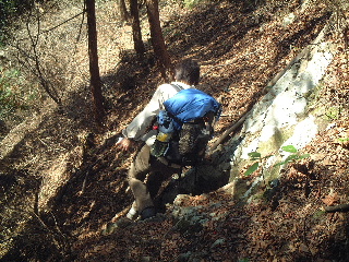 | こんなところもあり、小さな子供連れでというわけにはいかないですが、「ここは高尾山塊ですか?」と聞き返したくなるような、静かで気持ちの良いコース。すっかり気に入ってしまいました。 | |