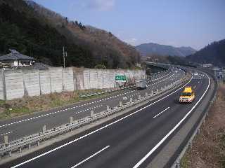 | 中央高速道路です。土曜日の午後3時、まだ交通量が少ないですね〜。 その場所を下りて振り返ると・・・ |