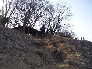 中央道が見えてきたところです。まわりには赤い椿(ヤブツバキ?)が結構咲いていました。 |