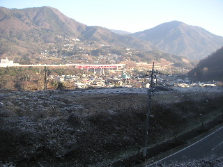 | 振り返ると猿橋駅方向。百蔵山と扇山がまだ見えます。 | |