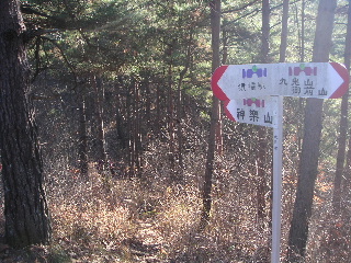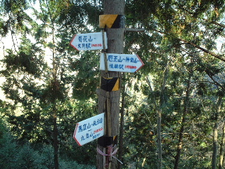 | のんびりとバス停から歩き出して、50分ほどで神楽山と御前山の分岐に着きました。 | |