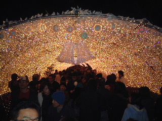 | 目的地は御殿場高原ビール、3時の待ち合わせに間に合いましたが、友人は早くに到着していました。私達は初めてでしたが、彼らは3回目。夜にはイルミネーションがきれいということですが、どんどん規模が大きくなっているようで、楽しみです。昼間の写真を撮ってから先ずはバイキングレストラン麦畑へ。ビールの飲み放題、食べ放題で3000円。80分ですが、充分楽しめました。もちろん他にも豪華なレストランやホテル、他の様々な宿泊施設などありますので、リッチなかたはそちらへどうぞ(お〜い、トシちゃ〜ん!今度連れて行ってよ〜!・・・・(^^ゞ)。 駐車料金はかかりません。車中泊にもってこいですね(^_-)-☆ 食事が済んでゆっくり夜のイルミネーションを楽しみます。物凄い人、人、人・・・でした。でも広いのでそれなりに楽しめます。(イルミネーションは2月28日まで) |