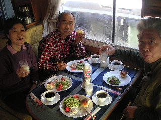 | ゆっくりと朝食を済ませ、青空の中帰路につきました。 | |