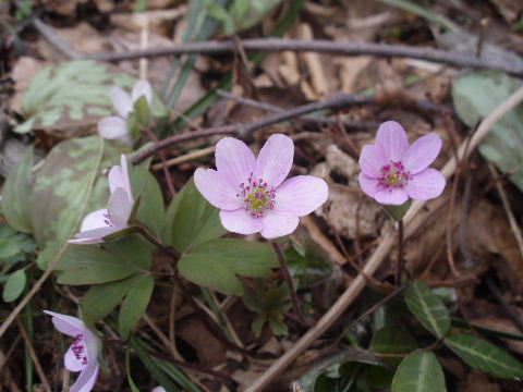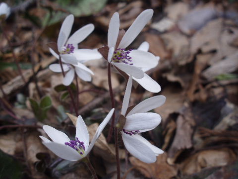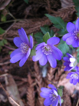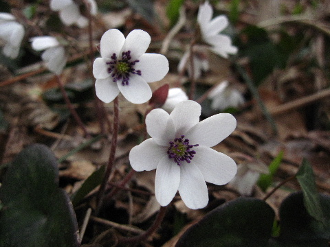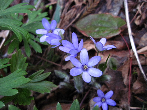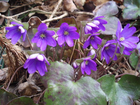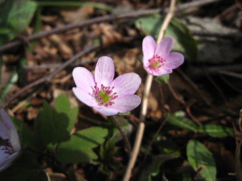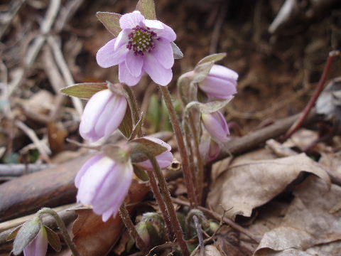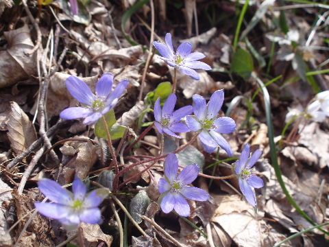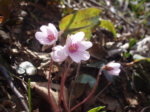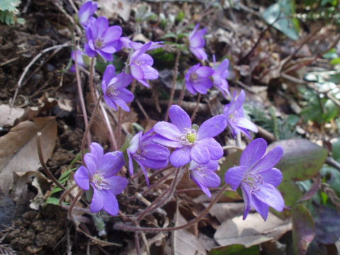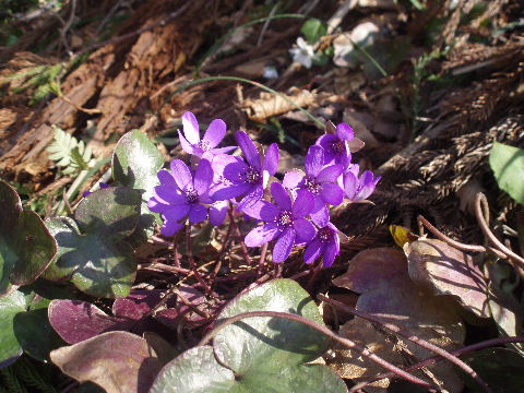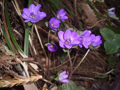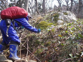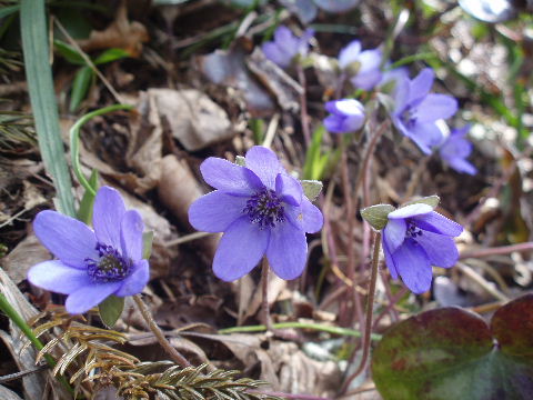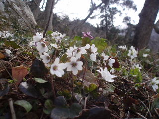 | 歩き始めて間もなく登山道から離れた場所に雪割草がちらほら。 | |