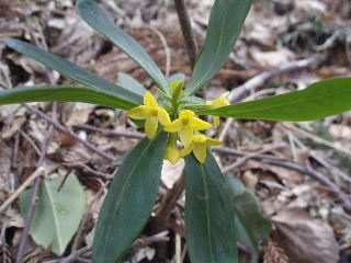 | 足元は次第に華やかな彩りが見られますが、樹林帯の芽吹きはまだこれから。遠目に黄色いお花が咲いている木が見えましたがアブラチャンでしょうか? | |