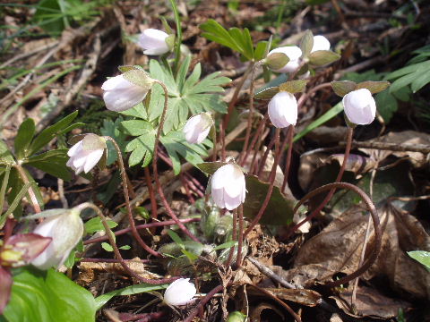 | 熊笹の間にも以前はみられたトキワイカリソウが今回見つけられませんでした。もう終わってしまったのかな? | |